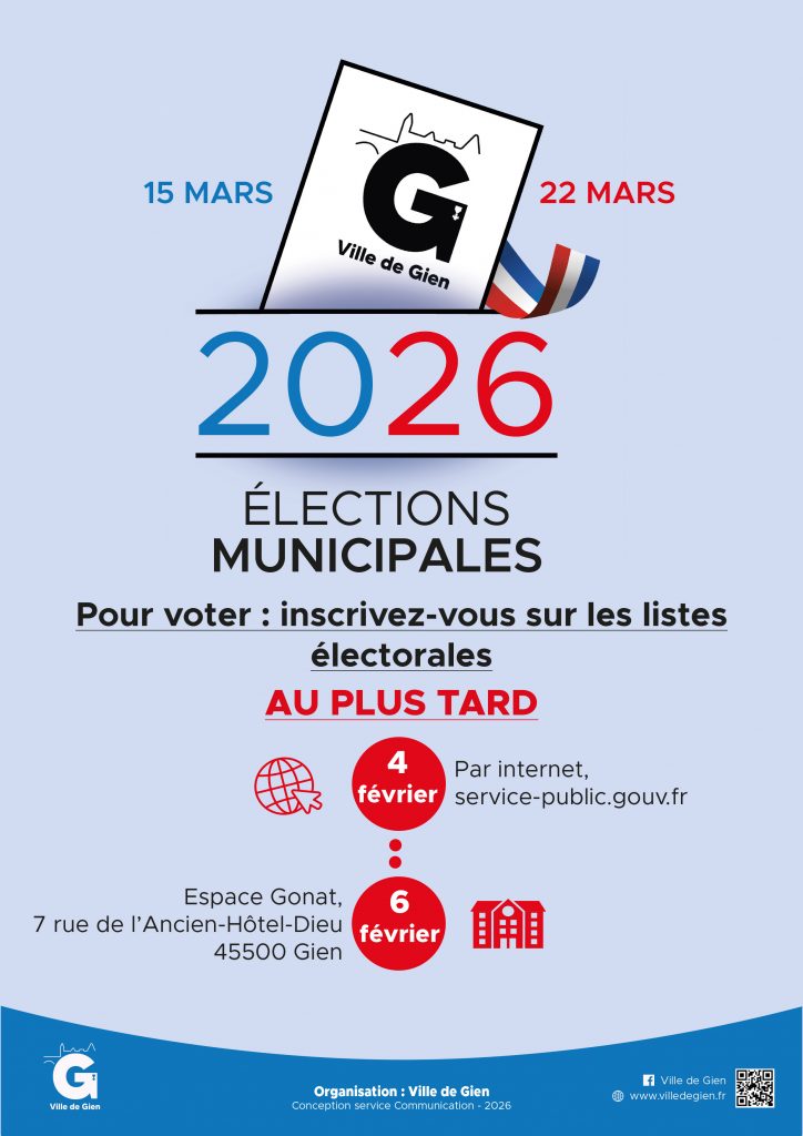 Inscription possible sur service-public.gouv.fr ou à l’Espace Gonat (7 rue de l’Ancien-Hôtel-Dieu) avant le 4 et 6 Février.